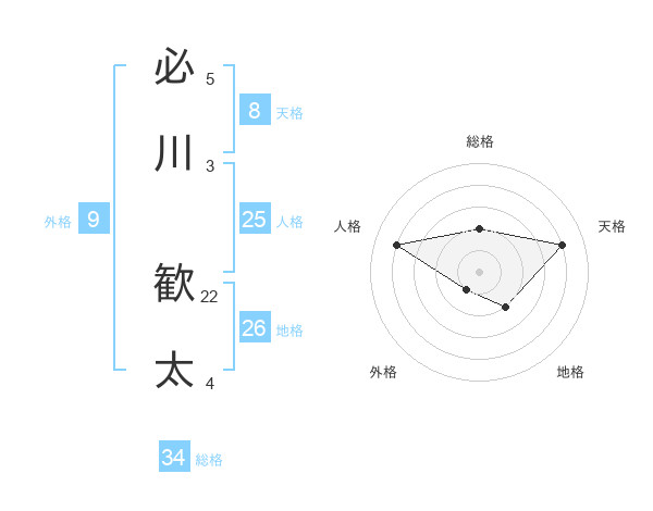 必川 歓太さんの天格は8画の4点!
