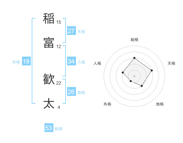 稲富 歓太さんを姓名の画数から五運を鑑定