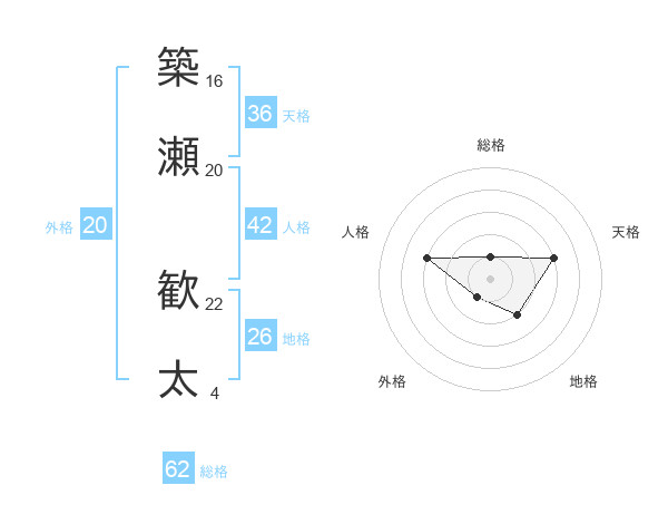 築瀬 歓太さんの総格は62画の1点!