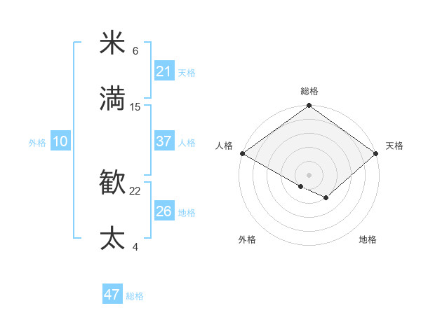 米満 歓太さんの総格は47画の5点!