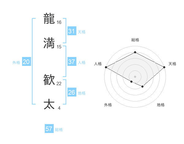 龍満 歓太さんの総格は57画の4点!