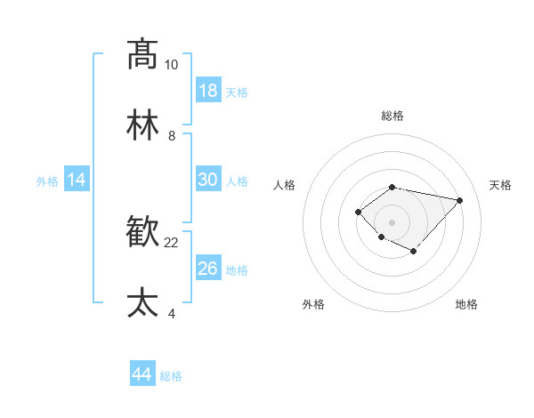 髙林 歓太さんを姓名の画数から五運を鑑定