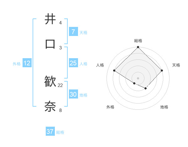 井口 歓奈さんの総格は37画の5点!