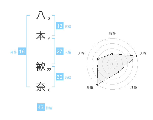 八本 歓奈さんの外格は16画の5点!