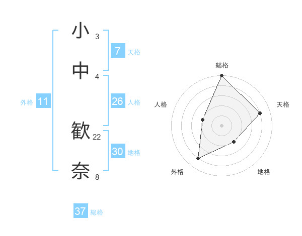 小中 歓奈さんの総格は37画の5点!