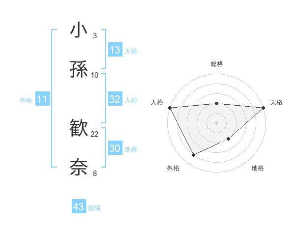 小孫 歓奈さんを姓名の画数から五運を鑑定