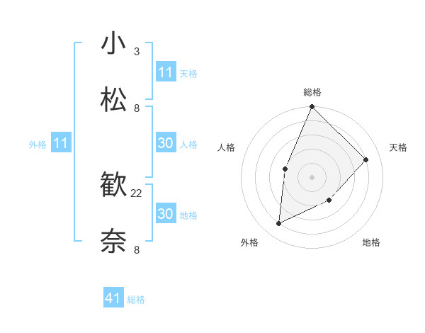 小松 歓奈さんを姓名の画数から五運を鑑定