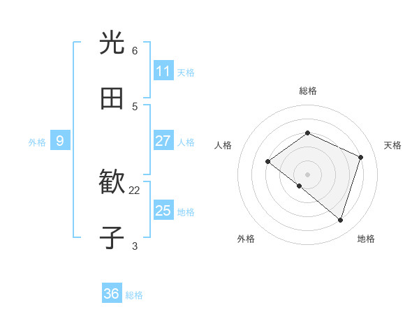 光田 歓子さんの天格は11画の4点!