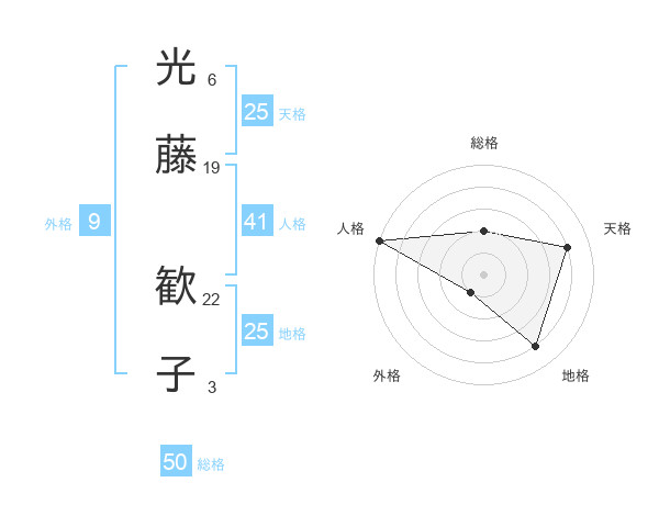 光藤 歓子さんを姓名の画数から五運を鑑定