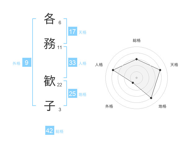 各務 歓子さんの総格は42画の3点!