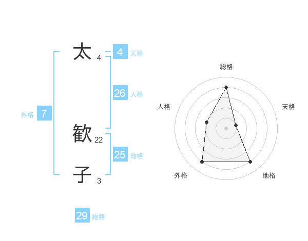 太 歓子さんの総格は29画の4点!
