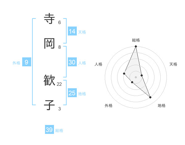 寺岡 歓子さんの総格は39画の5点!