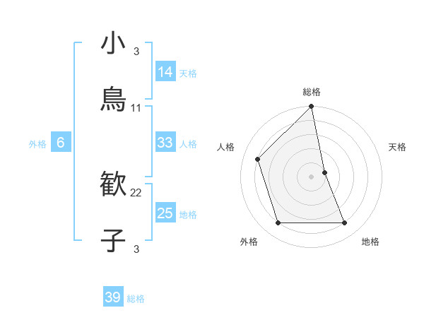 小鳥 歓子さんの総格は39画の5点!
