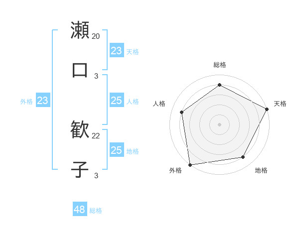 瀬口 歓子さんの天格は23画の5点!