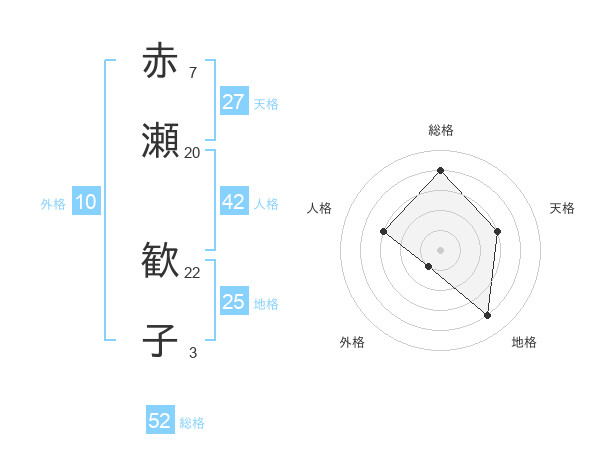 赤瀬 歓子さんを姓名の画数から五運を鑑定