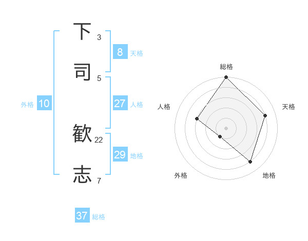 下司 歓志さんの総格は37画の5点!
