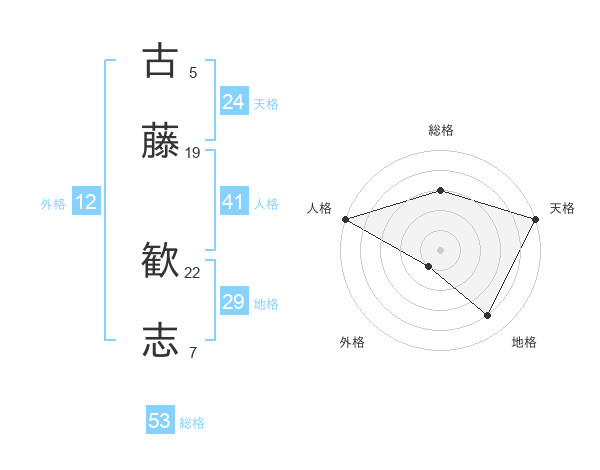 古藤 歓志さんを姓名の画数から五運を鑑定
