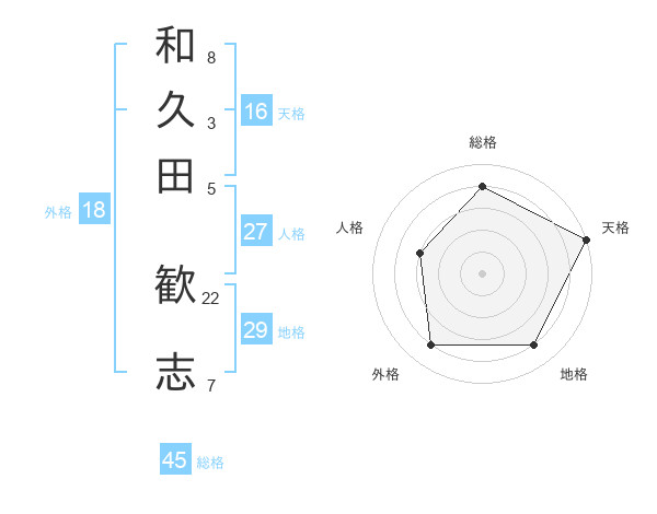 和久田 歓志さんを姓名の画数から五運を鑑定