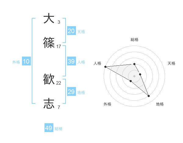 大篠 歓志さんを姓名の画数から五運を鑑定