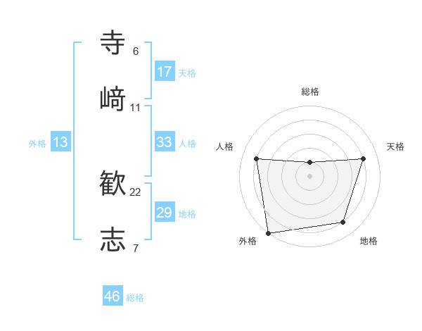寺﨑 歓志さんの外格は13画の5点!