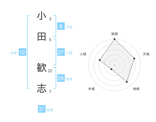 小田 歓志さんの総格は37画の5点!