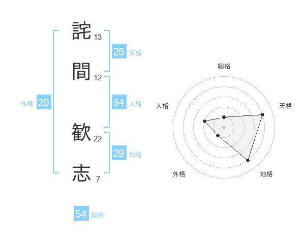 詫間 歓志さんの天格は25画の4点!