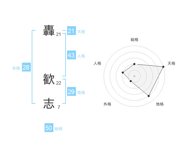 轟 歓志さんの天格は21画の5点!