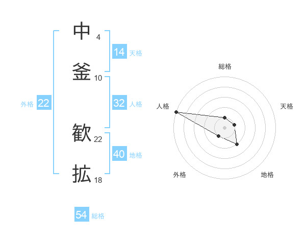中釜 歓拡さんを姓名の画数から五運を鑑定