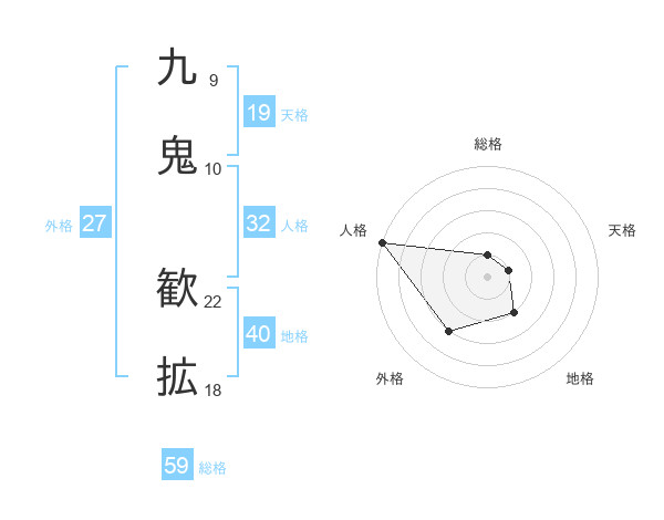 九鬼 歓拡さんを姓名の画数から五運を鑑定