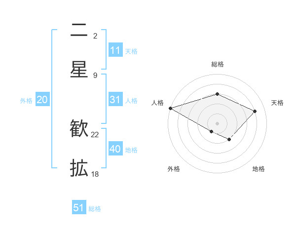 二星 歓拡さんを姓名の画数から五運を鑑定