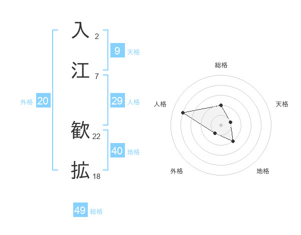 入江 歓拡さんを姓名の画数から五運を鑑定