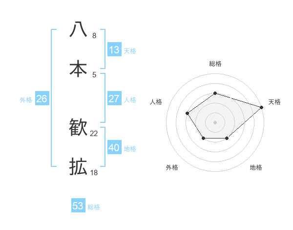 八本 歓拡さんを姓名の画数から五運を鑑定
