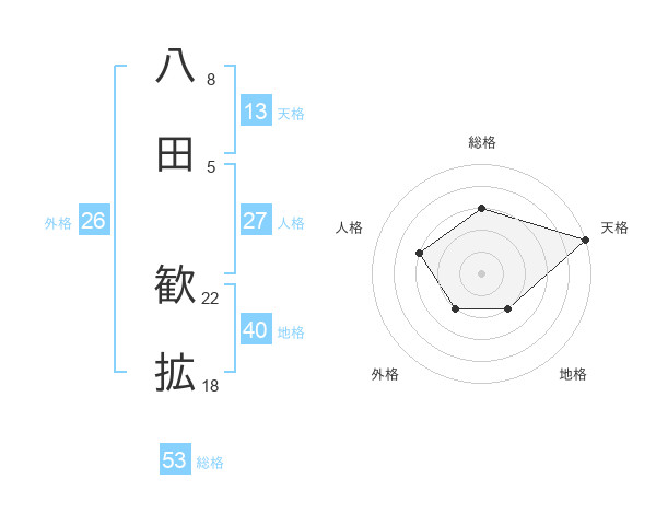 八田 歓拡さんを姓名の画数から五運を鑑定