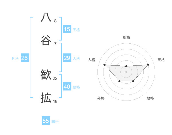 八谷 歓拡さんを姓名の画数から五運を鑑定
