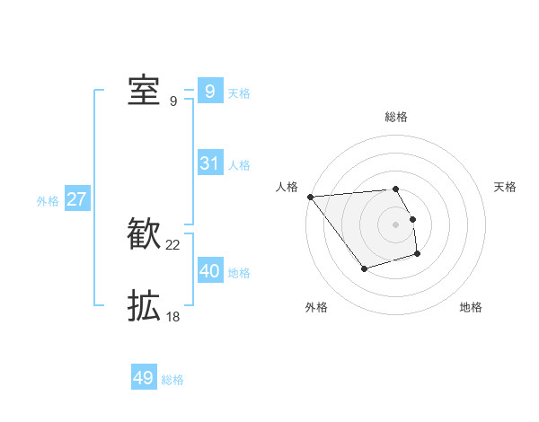 室 歓拡さんの総格は49画の2点!