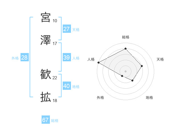 宮澤 歓拡さんを姓名の画数から五運を鑑定