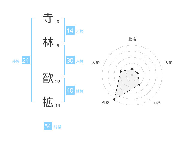 寺林 歓拡さんの総格は54画の1点!