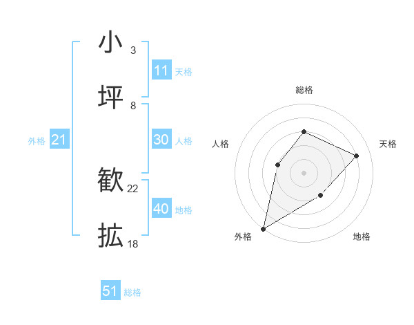 小坪 歓拡さんを姓名の画数から五運を鑑定