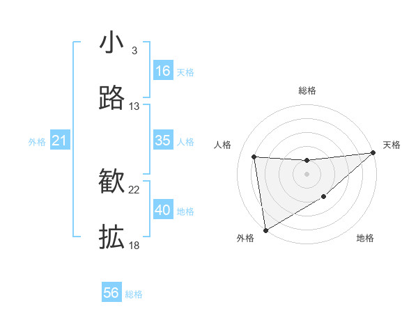 小路 歓拡さんの総格は56画の1点!