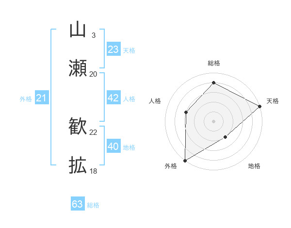 山瀬 歓拡さんの総格は63画の4点!