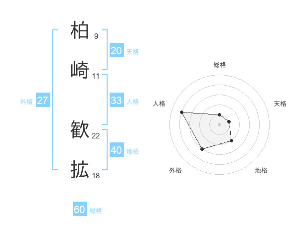 柏崎 歓拡さんの総格は60画の1点!