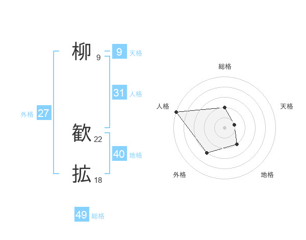 柳 歓拡さんを姓名の画数から五運を鑑定