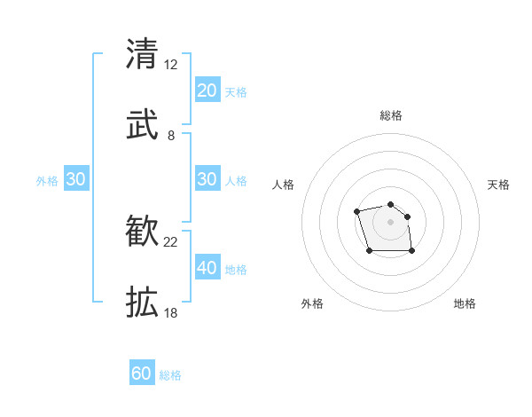 清武 歓拡さんの総格は60画の1点!