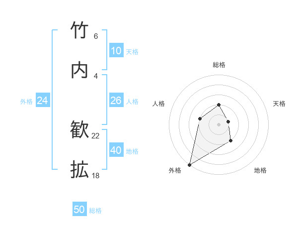 竹内 歓拡さんを姓名の画数から五運を鑑定