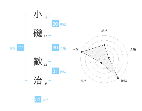 小磯 歓治さんを姓名の画数から五運を鑑定
