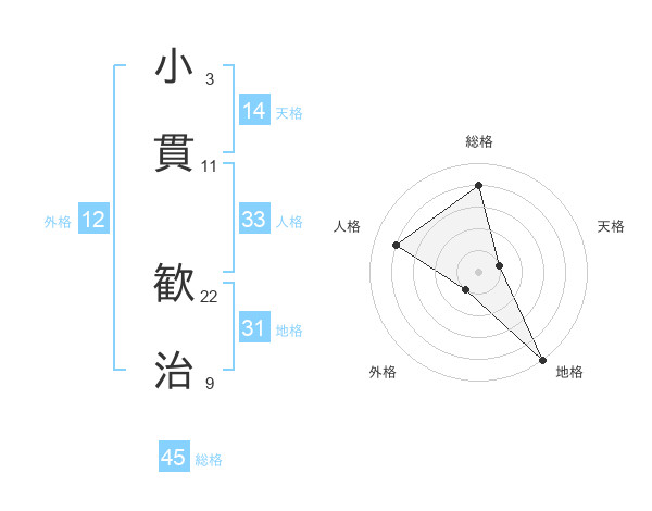 小貫 歓治さんの総格は45画の4点!