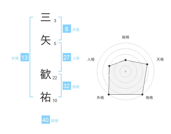 三矢 歓祐さんの外格は13画の5点!