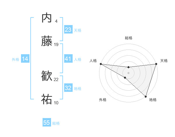 内藤 歓祐さんを姓名の画数から五運を鑑定