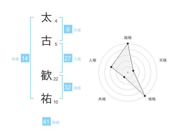 太古 歓祐さんを姓名の画数から五運を鑑定