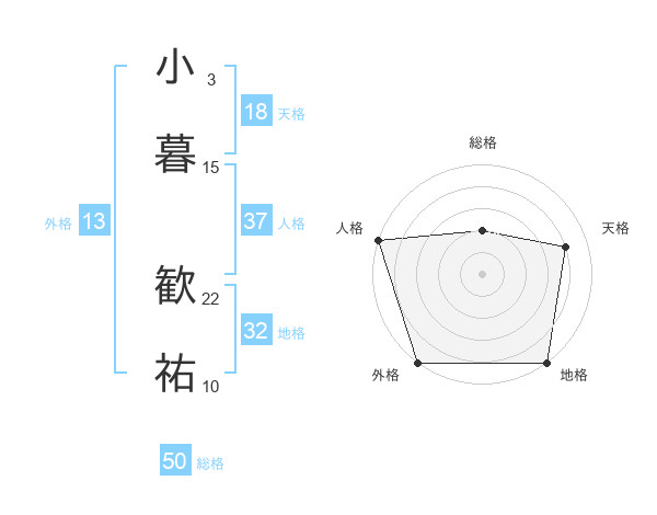 小暮 歓祐さんを姓名の画数から五運を鑑定